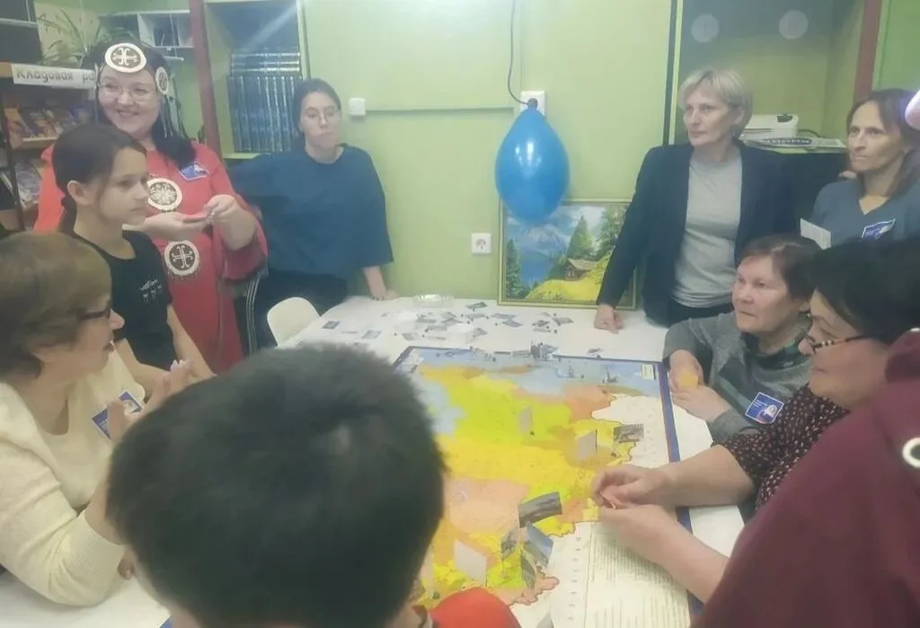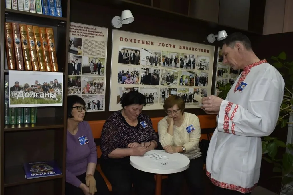 А после гости приняли участие в библиопутешествии по сибирским просторам. В Сибири проживает 36 коренных народностей, и всех их охватить не просто. Разделившись на команды, и взрослые, и подростки побывали и у эвенков, известных первопроходцам как тунгусы, и у бурят, у долганов, у якутов, у тофаларов и тувинцев. На каждой остановке гости выполняли задания.